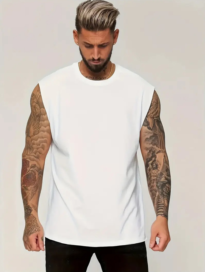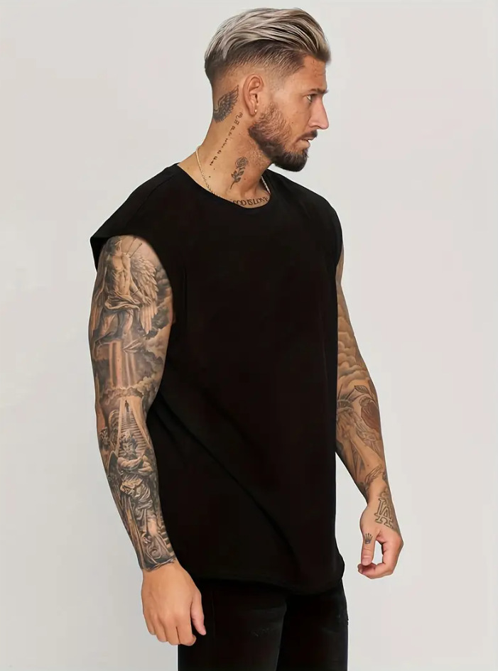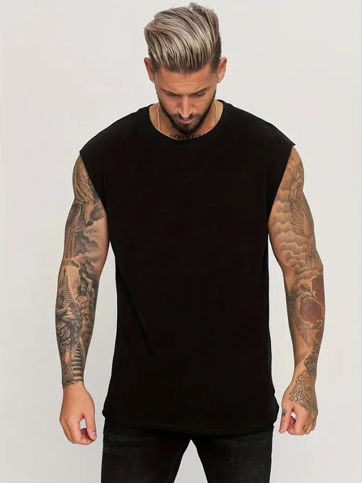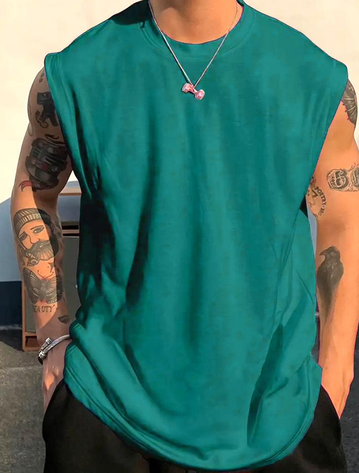 Men's Loose Pullover Solid Color Tank Top Sleeveless T-shirt