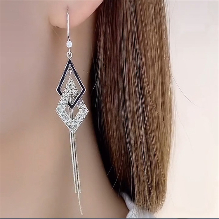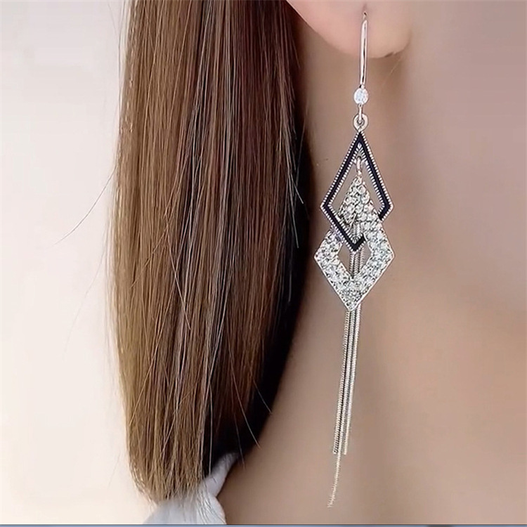 High-quality Light Luxury Full Diamond Long Earrings